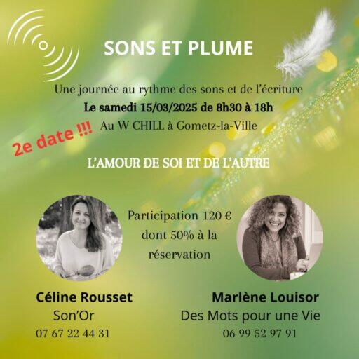 C’est ce que Céline et Marlène vous proposent pour cette journée intitulée « L’Amour de soi et de l’autre » 🤩. « Sons et plume » c’est le nom idéal pour associer les ateliers d’écriture ✍ et la sonothérapie pour plonger au cœur de vos émotions…Une journée en toute simplicité et convivialité marquée sous le signe du partage. Parce que les mots tout comme les sons, sont des vibrations…