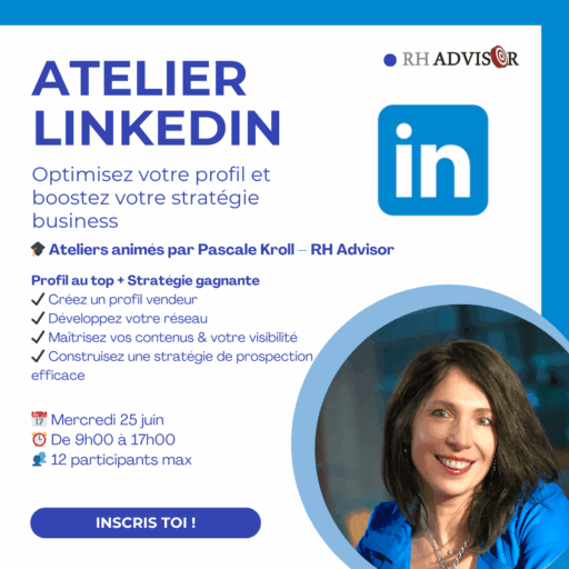 Pascale KROLL, fondatrice de RH Advisor, vous propose 1 journée comprenant 2 ateliers de 3h chacun, pratiques et concrets, pour apprendre à :