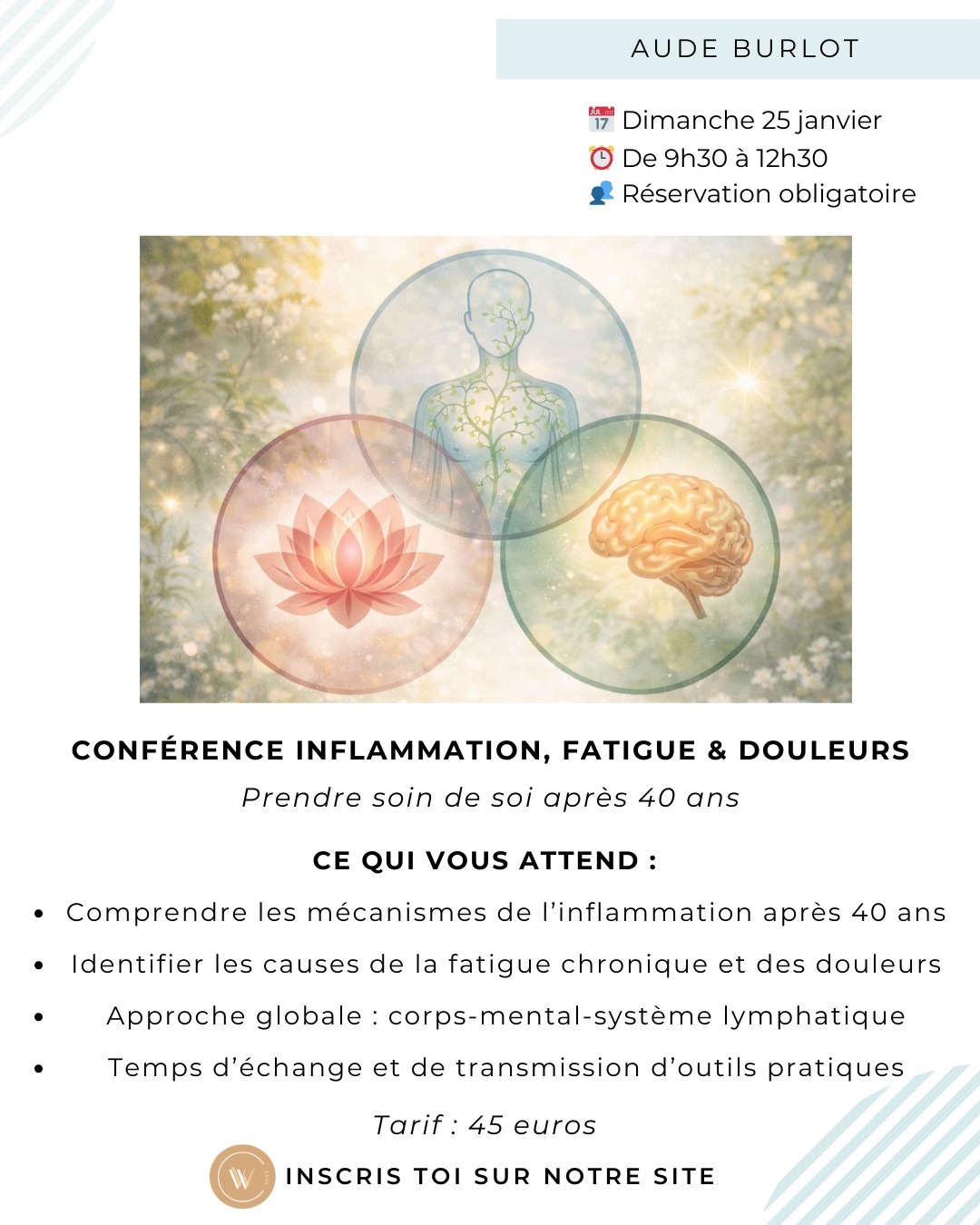 Pendant cette matinée immersive, vous découvrirez comment mieux comprendre les liens entre corps, esprit et système lymphatique, afin d’apaiser durablement les inflammations, réduire la fatigue et soulager les douleurs du quotidien.
