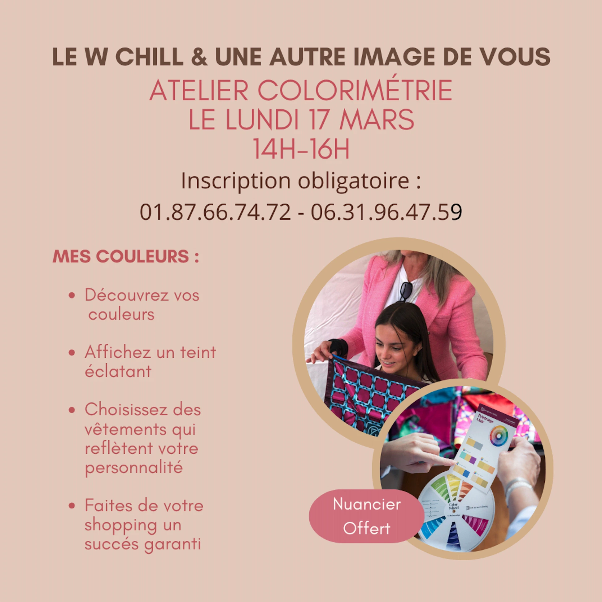 Venez rencontrer Élisabeth Lanvin, conseillère en image certifié par ESR PARIS, pour un atelier sur la Colorimétrie.