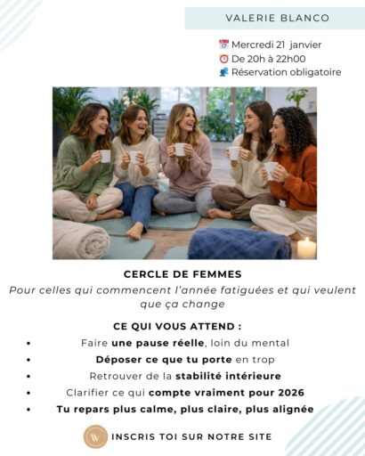 Le W Chill accueille un cercle de femmes animé par Valérie Blanco-Collet (Jardin d’Essentiel), dédié à celles qui se sentent fatiguées, chargées, ou à un moment charnière de leur vie.