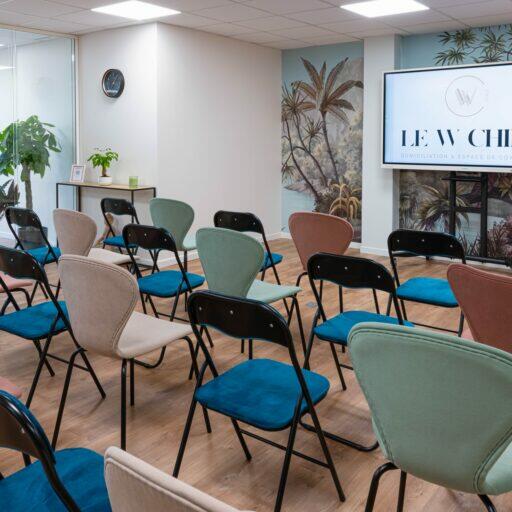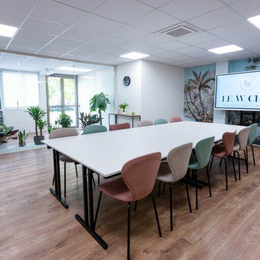 Salle de réunion modulable pour organiser un atelier, une formation, une réunion de travail ou pour une visioconférence.